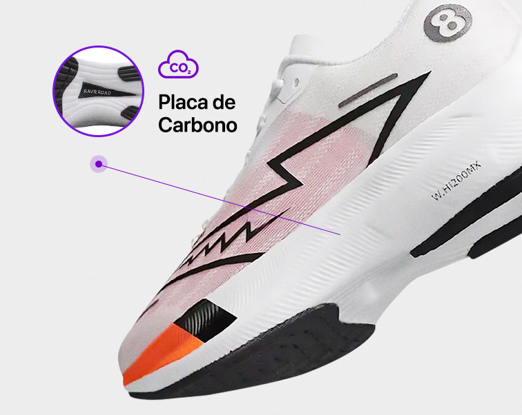 A placa de carbono integrada ao Tênis Carbon oferece o equilíbrio perfeito entre estabilidade e propulsão. Ideal para corridas médias e longas, ela reduz o esforço e potencializa seu desempenho a cada passada. Experimente correr como nunca antes.