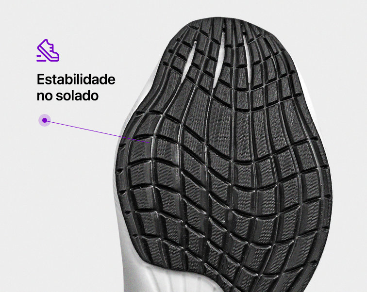 Estabilidade em qualquer terreno! O solado aderente do Tênis Carbon proporciona tração excepcional, garantindo segurança e confiança em todas as suas corridas e caminhadas. Não escorregue no desempenho.