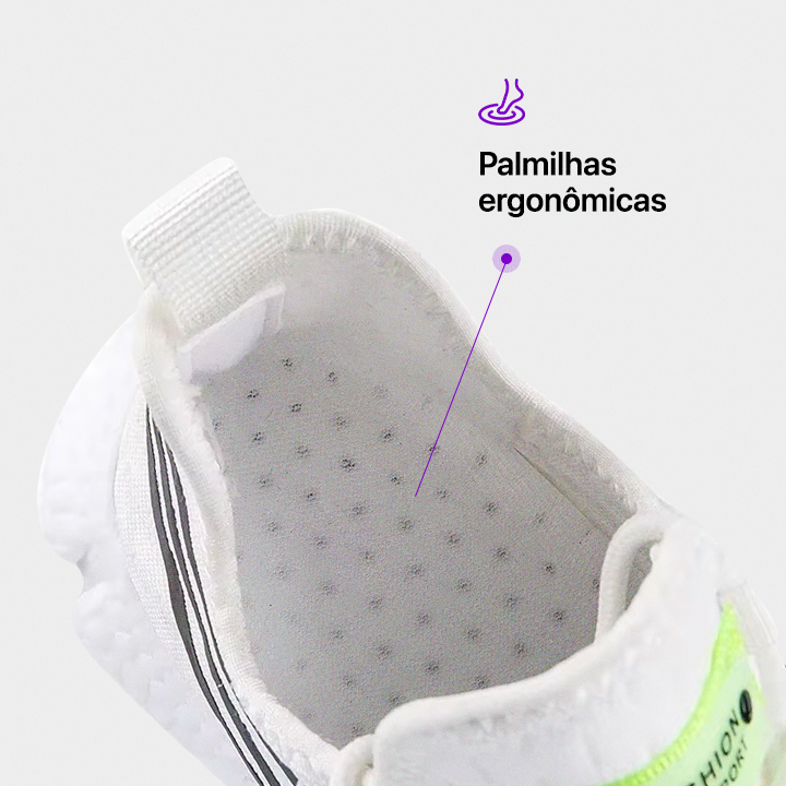As listras laterais do tênis são refletivas em contato com a luz, te proporcionando mais segurança principalmente em atividades na rua
