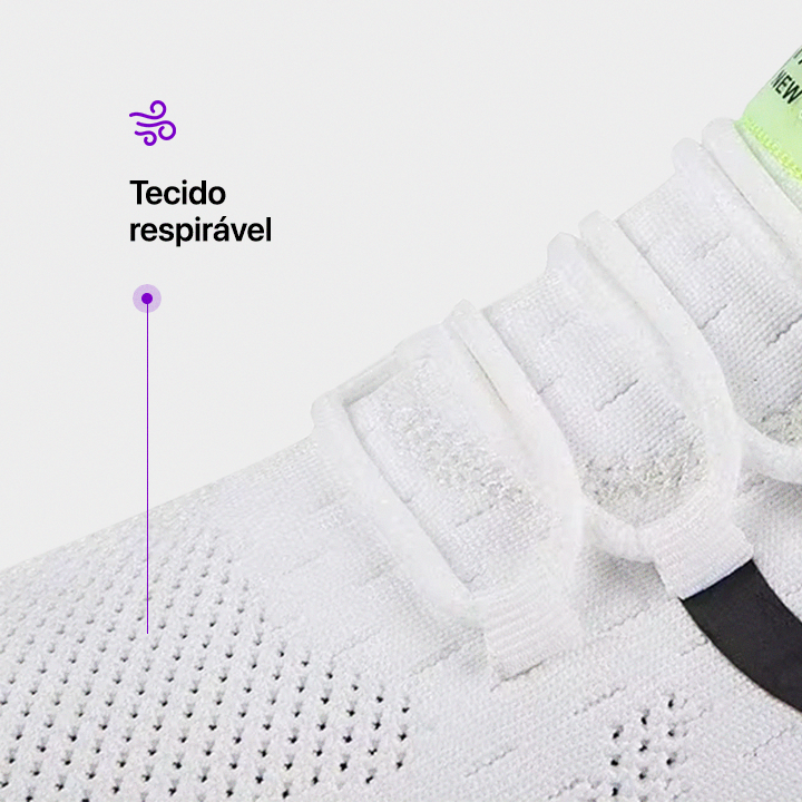 Solado de EVA que oferece amortecimento leve e suave. Material superior MESH, proporcionando conforto e frescor, adaptando-se ao formato do pé para uma ótima experiência durante o exercício.